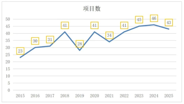 2015年至2025年申报机械工业科学技术奖(机床工具专业)参评项目数量情况如下: