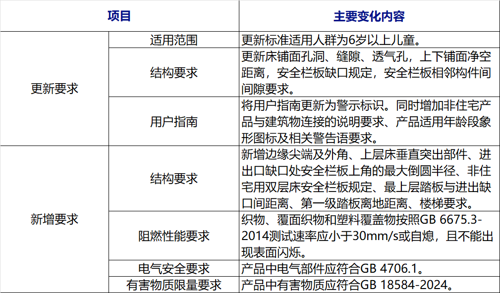 相较GB 24430.1-2009《家用双层床第1部分:安全要求》主要变化如下: