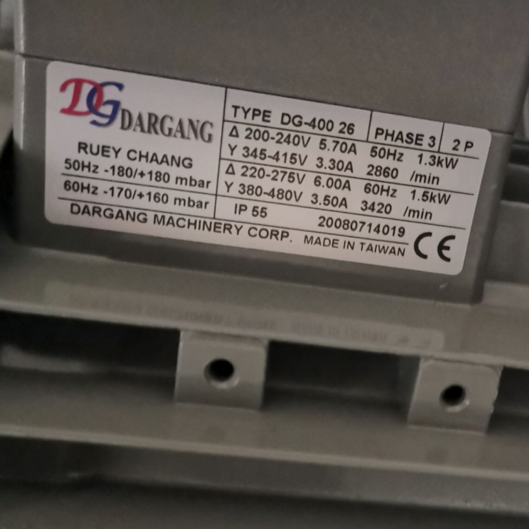自动化包装机械设备用中国台湾达纲DG-400-26高压鼓风机