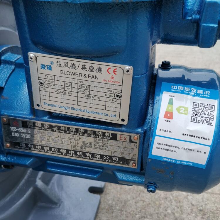 防爆鼓风机的结构:A马达:TEFC IP54F级绝缘马达(依据欧洲CE规格)B轴承:叶轮与轴部间,采用密封防尘设计,可防止尘土进入,加长使用年限C叶轮:经特殊改良设计之叶轮,柔性电板真空吸附高压风机叶轮与机身之缝隙范围减少,在运转时可防止粉尘阻塞,与其他同类产品之多角及缝隙围面大,易造成阻塞而导致柔性电板真空吸附高压风机故障的缺点不同。 防爆鼓风机等级的划分标准1、电机防爆等级 电机防爆等级由3部分构成1)在爆炸性气体区域(0区、1区、2区)不同电气设备使用安全级别的划分。如旋转电机选型分为隔爆型(代号d)、正压型(p)、增安型(e)、无火花型(n)2)气体或蒸气爆炸性混合物等级的划分,分为ⅡA、ⅡB、ⅡC三种,这些等级的划分主要是依照zui大试验安全间隙(MESG)或zui小点燃电流(MICR)来区分的。3)引燃某种介质的温度分组的划分。主要分为T1-450℃