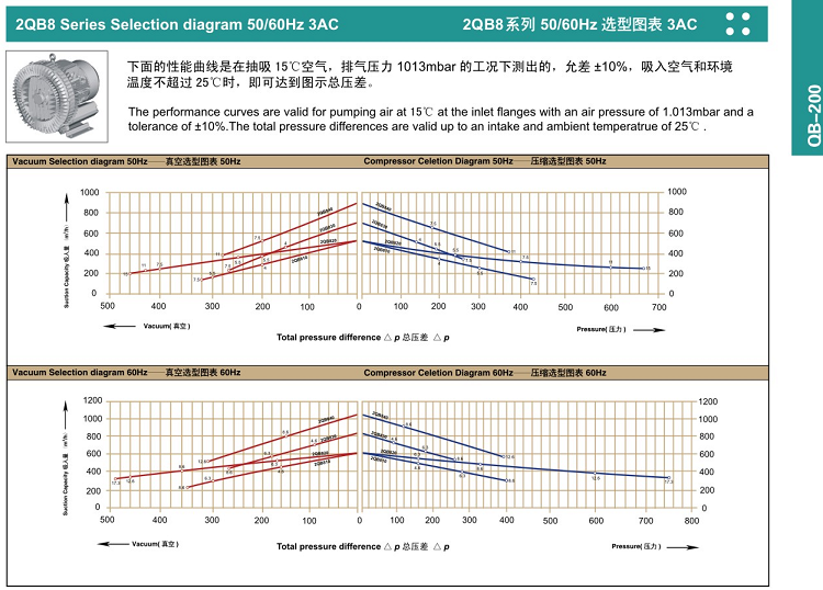 有效风压:50mbar~1040mbar 风量:40立方/小时~2050立方/小时(为方便选用不同规格,单段式/双段式均有货提供)
