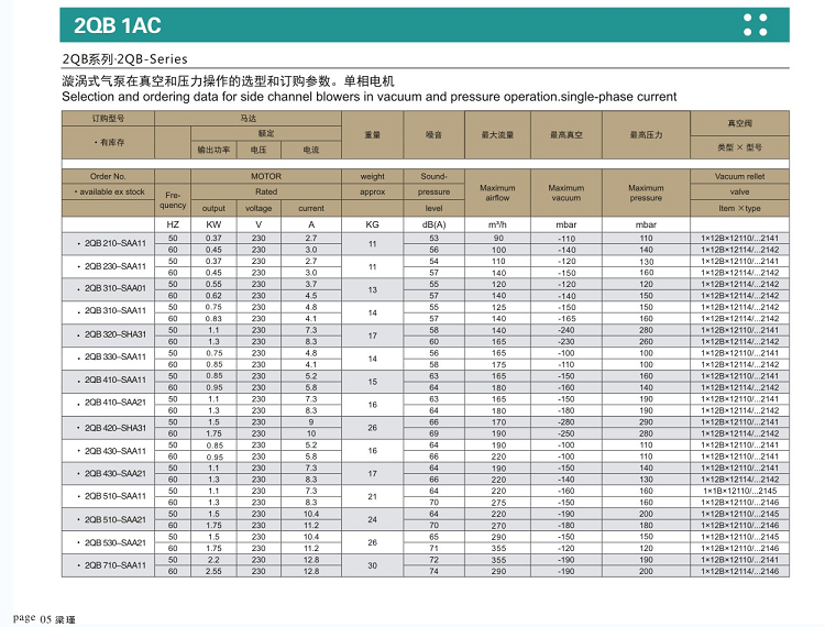 梁瑾2QB系列高压风机 高压鼓风机 真空漩涡气泵规格: