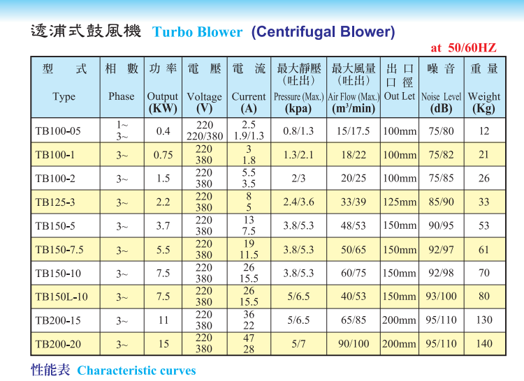 TB-125(2.2KW) TB-150(3.7KW) TB-180(5.5KW)