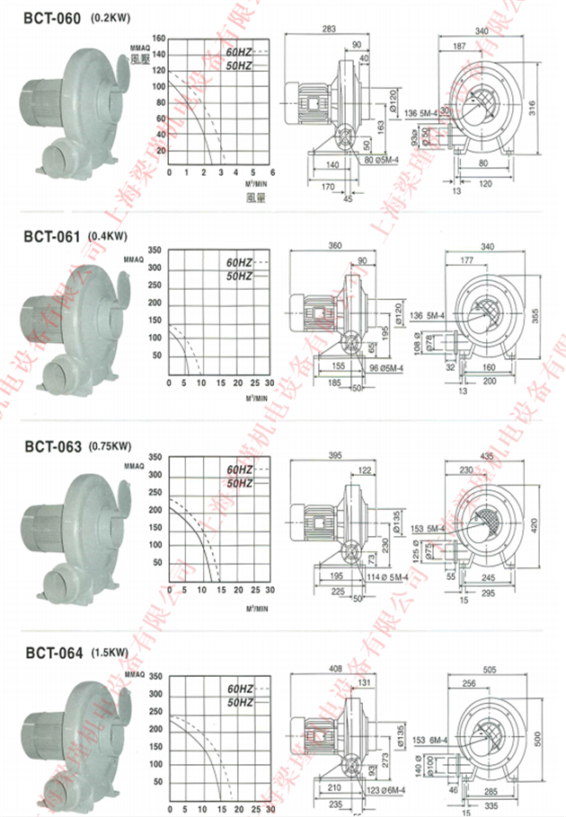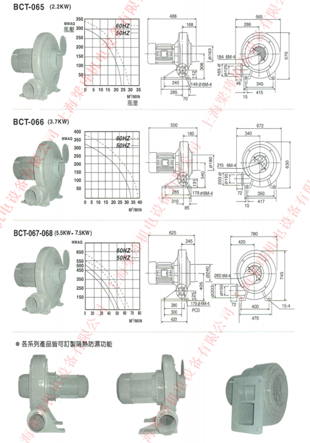 BCT-060: 0.2 KW 、BCT-061: 0.4 KW 、BCT-063: 0.75 KW 、BCT-064: 1.5 KW 、BCT-065: 2.2 KW 、BCT-066: 3.7 KW 、BCT-067-068: 5.5 KW-7.5 KW
