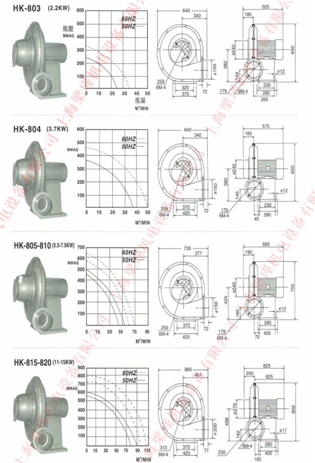 HK-8005: 0.4 KW 、HK-801: 0.75 KW 、HK-802: 1.5 KW 、HK-803: 2.2 KW 、HK-804: 3.7 KW 、HK-805-810: 5.5-7.5 KW 、HK-815-820: 11-15 KW