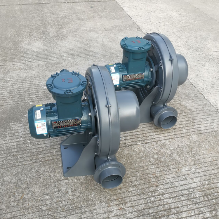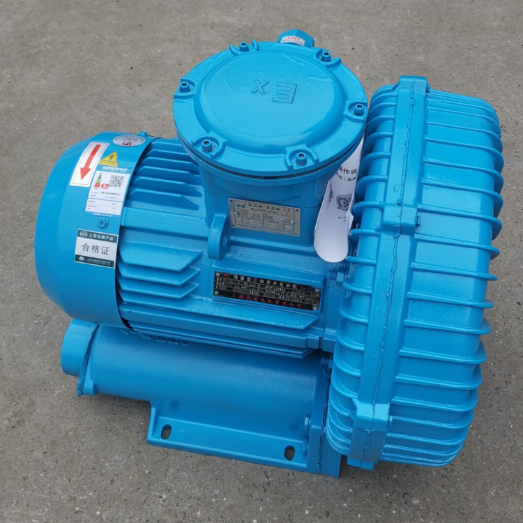 防爆风机整体由压铸铝制造,可以抵抗高温和防止电火花的产生,适用于易燃易爆场所。是一款防爆性能高、运行性能稳、使用寿命长、风压足、风量大的新型动力气源设备;防爆等级为DII BT4,CT4,绝缘防护等级为IP55 F级,防爆性能符合国际标准。防爆风机因配套隔息型的防爆电机外,一般符合“Exd“的要求,防爆级别为BT4/CT4等级。 兼容透浦风机风压、风量特性,应用除矿用环境外的任一工况(防腐的耐酸碱性可内外喷防腐漆工艺)。防爆风机利用再生原理设计,单片式的离心风叶径小,使风量增速,产生高风压特性,免保养!无油气!寿命长!高效!节能!环保等特点。