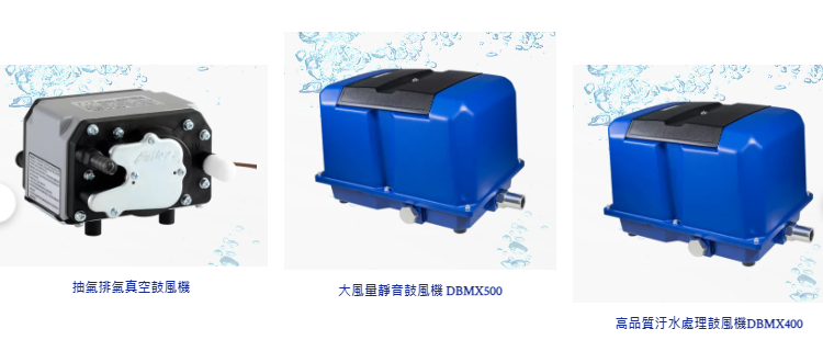 請注意:為避免觸電危險,安裝使用鼓風機務必遠離水源且避免液體逆流引起短路。鼓風機運作時電線務必接地避免觸電。鼓風機僅可輸送乾淨空氣。不可輸送任何含化學成分、可燃性氣體或易爆性氣體,且不建議將鼓風機放置於含上述氣體的環境中。請定期檢驗出氣量並且確認鼓風機在建議壓力範圍內運行。背壓過高 (水深過深或出氣孔堵塞導致)將使鼓風機壽命嚴重縮短。建議於鼓風機與出氣管間使用防水膠帶避免空氣外洩。鼓風機可使用的環境溫度於攝氏-10度(華氏14度)至攝氏40度之間 (華氏104度)。請避免將鼓風機直接暴露在陽光和雨水中。請每6個月清潔或更換過濾棉。建議一年一次更換鼓風機膜片。有關鼓風機的維護,請參閱維修指示或說明書。若需更換或維修手冊中所述零件,請洽相關技術人員或代理經銷單位。