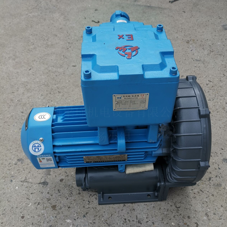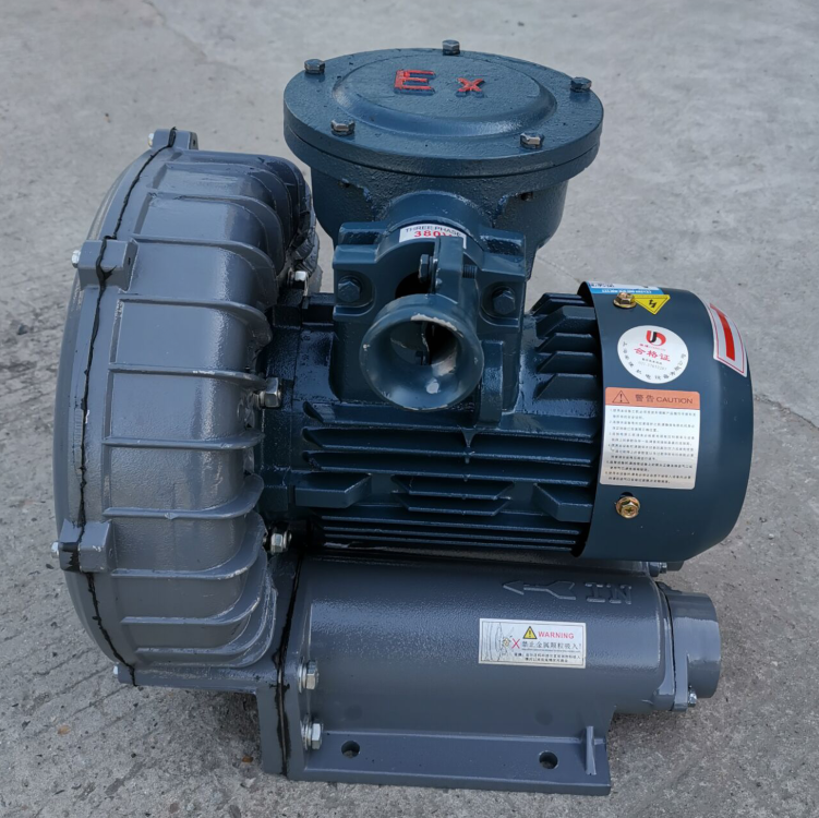 防爆鼓风机的泵体 叶轮采用铝合金压铸 因为铝合金材料遇到摩擦不会产生火花 所以化工油气回收符合防爆要求 电机采用防爆等级DIIBT4 防护等级IP55 二级防爆电机 . 防爆鼓风机的使用;主要用于化工,粉尘,沼气输送,,易燃易爆场所,各种机械设备配套使用。