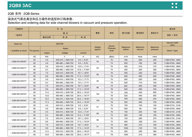 3、相对于离心风机和中压风机来说,其压力高很多,往往是离心风机的十几倍以上,比如说有一款型号为2QB的梁瑾高压鼓风机,其输出压力高达100KPA;